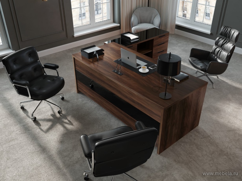Комплект для кабинетов “Акцент” в цвете Лагос полностью оправдывает свое название. Его дизайн построен на контрасте цветов и материалов. Комбинирование ДСП и тонированного стекла создает неповторимый образ в вашем офисе, обладая при этом высочайшей функциональностью.
