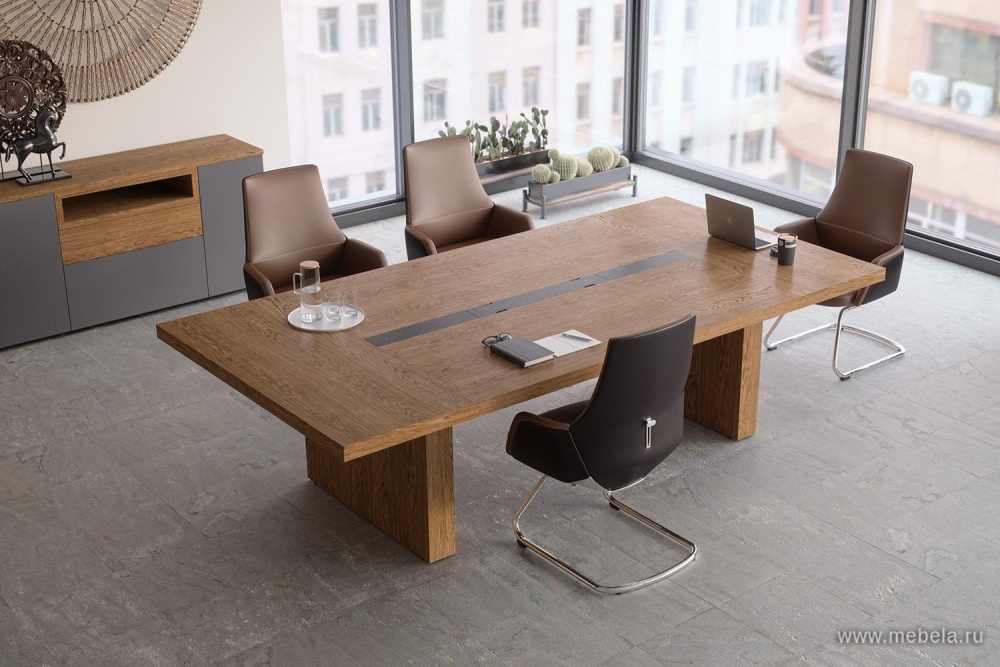 Стол руководителя с опорной тумбой, бюваром и кабель-каналом (правый)