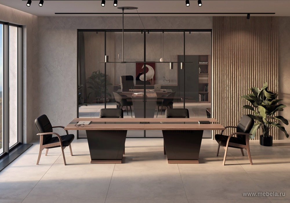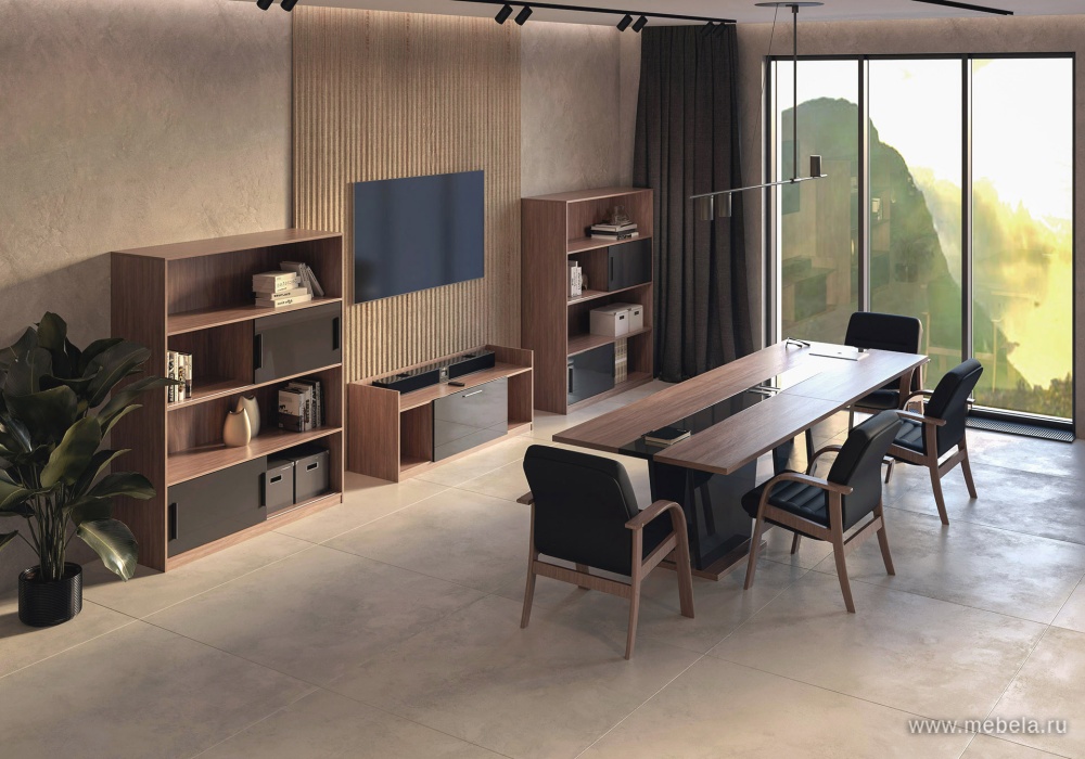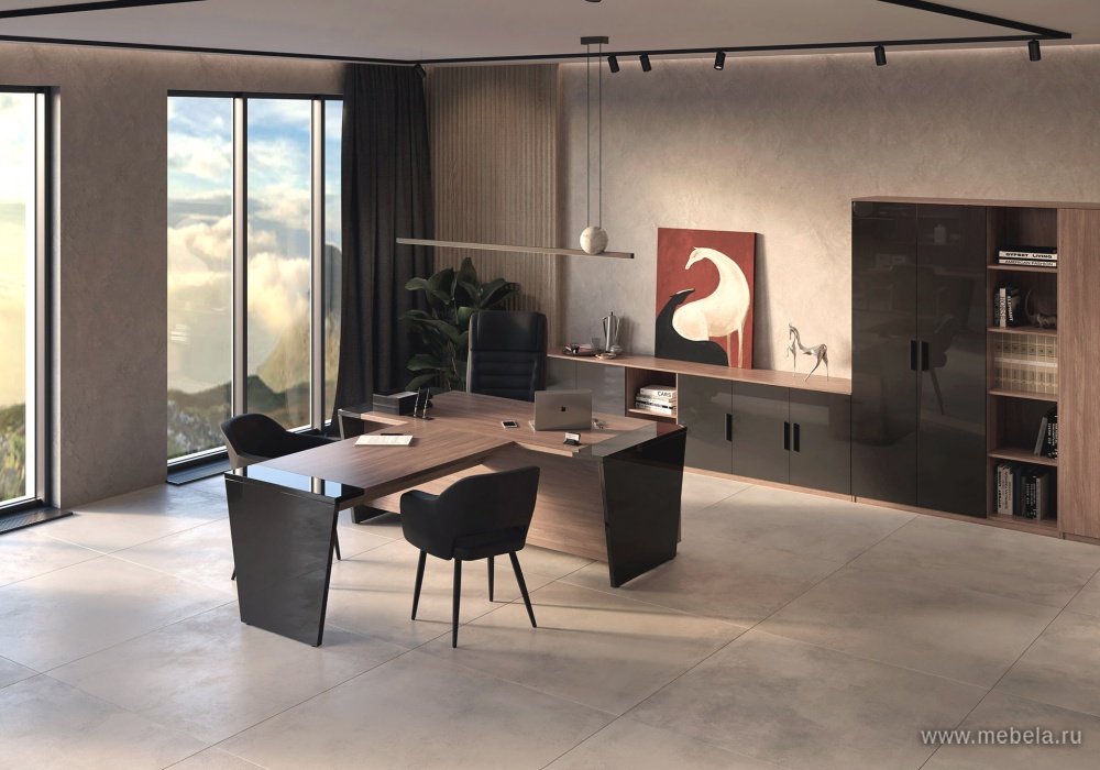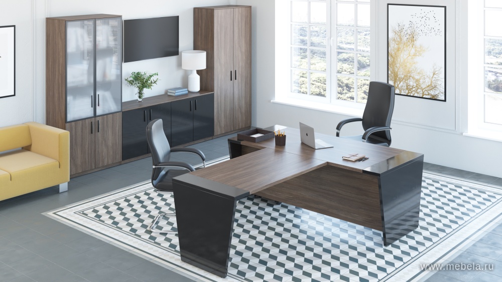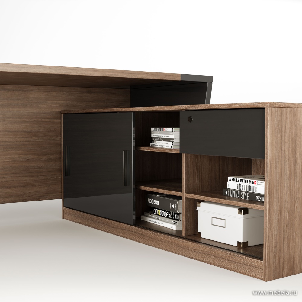 Отечественные производители предлагают выбор разных размеров и композиционным исполнением: столы руководителя, для переговоров, брифинг-приставки, правосторонние и левосторонние приставные столы, тумбы приставные и передвижные, шкафы для бумаг и гардеробы. Каркас всех изделий, задних стенок из Л...