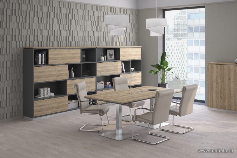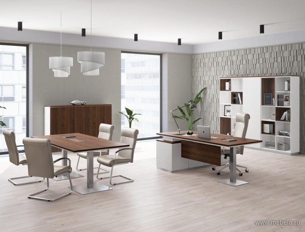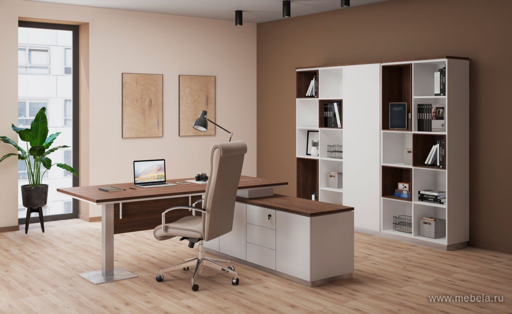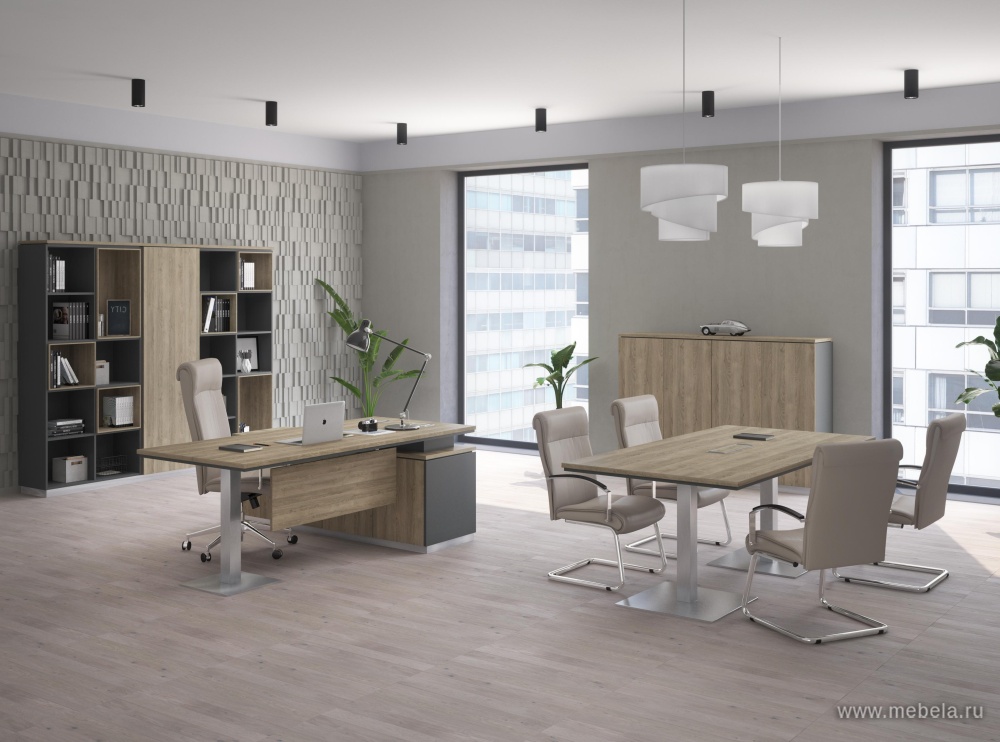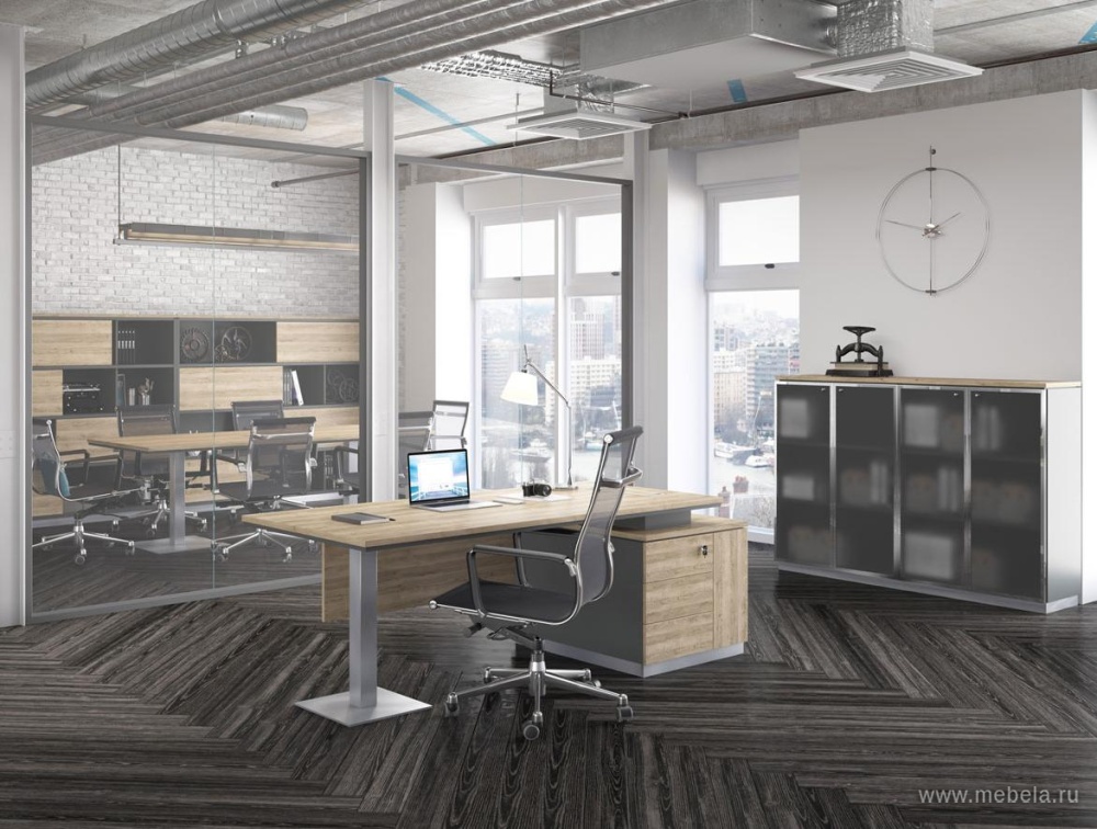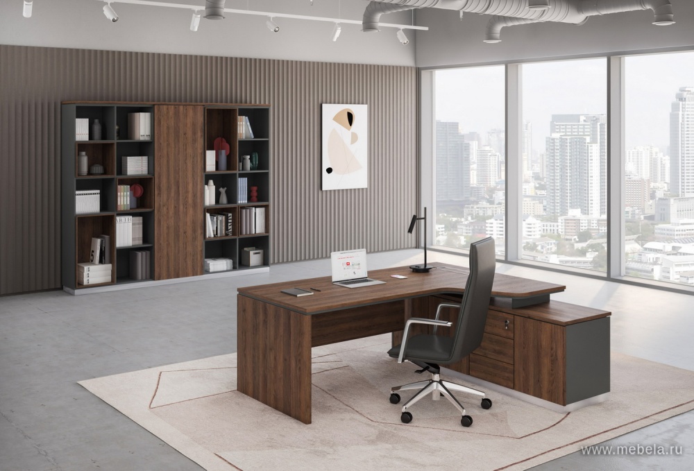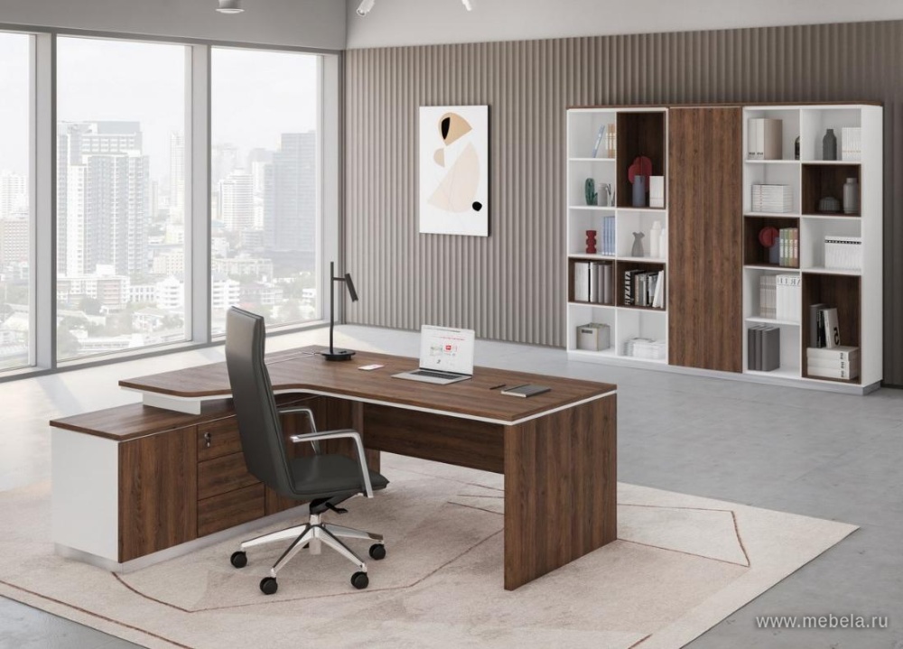 Кабинет руководителя City от российского производителя - это идеальное решение для современного офиса, сочетающее в себе стильный дизайн и функциональность. Изготовленный из ламинированной ДСП с кромкой из ПВХ толщиной 0,4; 1 и 2 мм, этот кабинет предлагает надежность и долговечность.