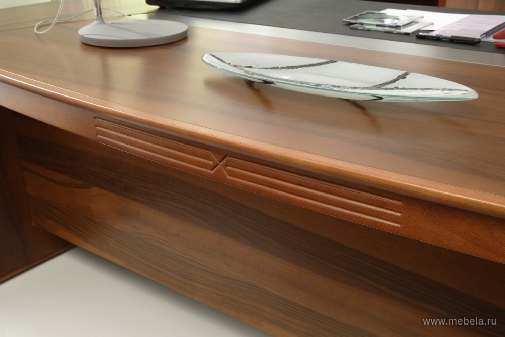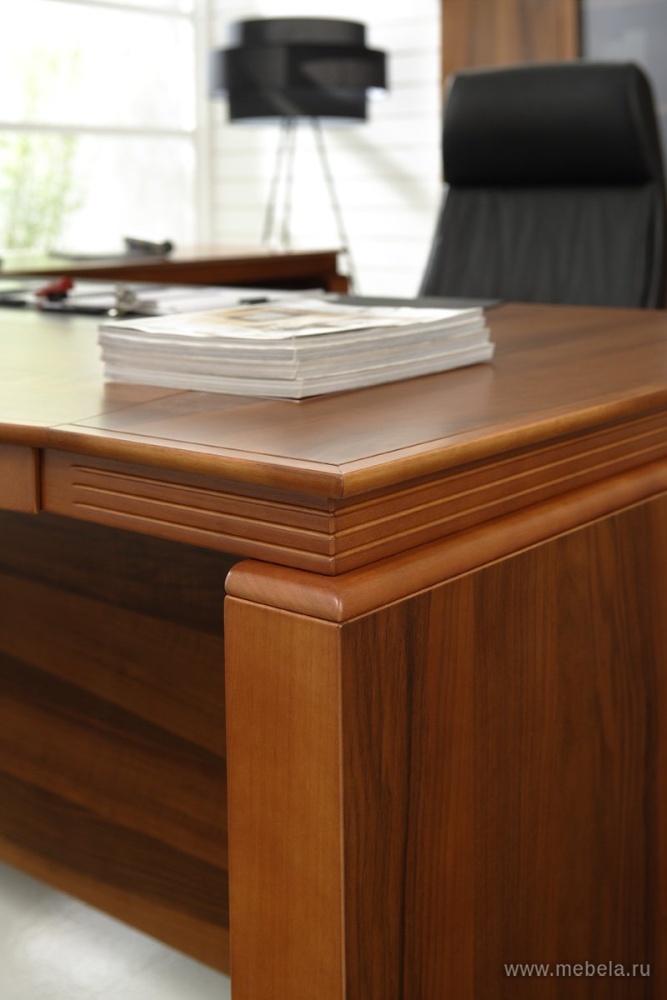 Многоуровневая проточка торцов создает неповторимый образ кабинетам руководителей Eur, несмотря на их кажущуюся примитивную форму. Будто положенные друг на друга доски из натурального массива повышают солидность внешнего вида и идеально подходят для создания статусного имиджа твердо стоящей на н...