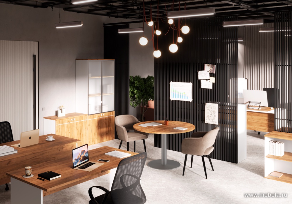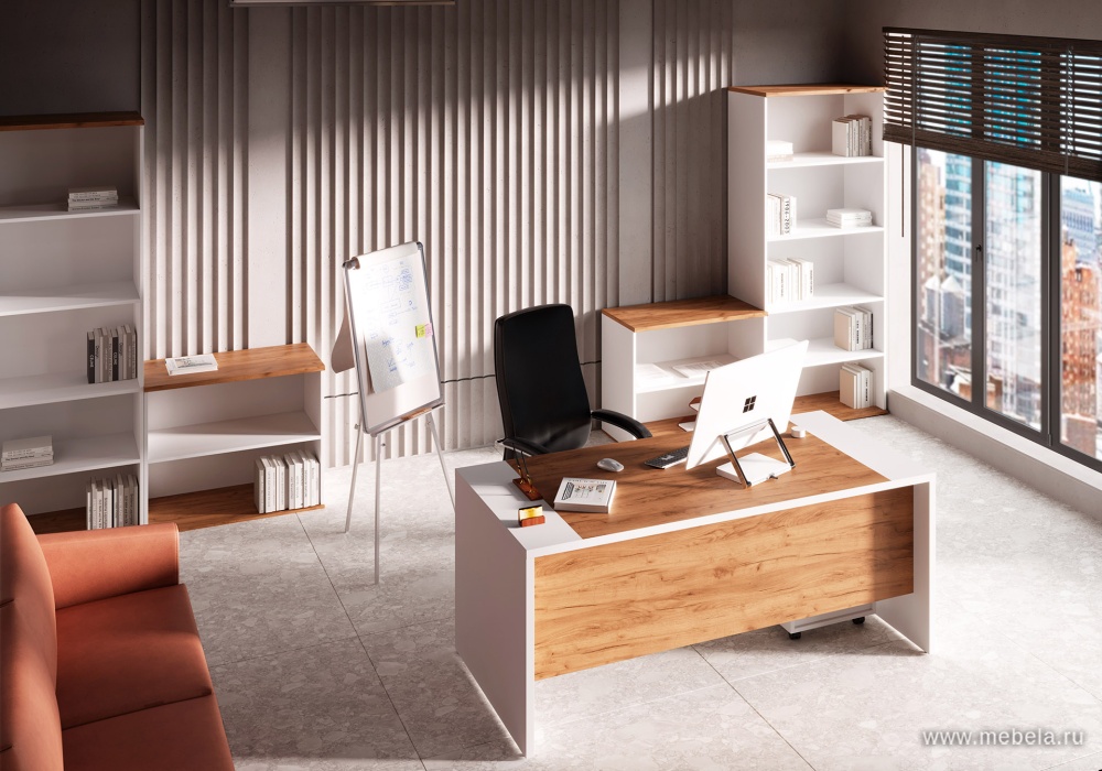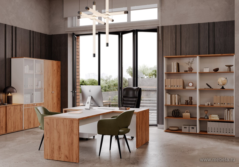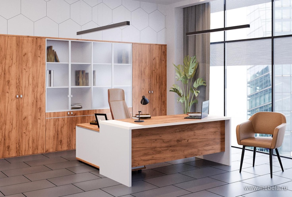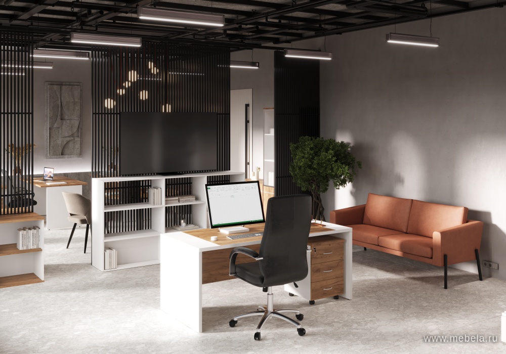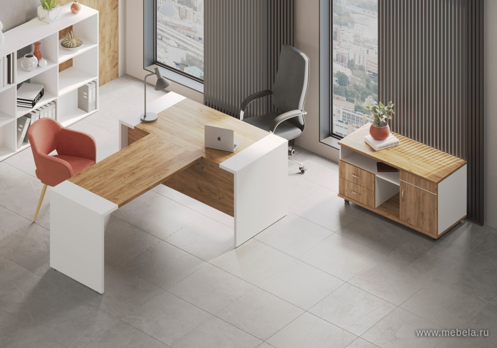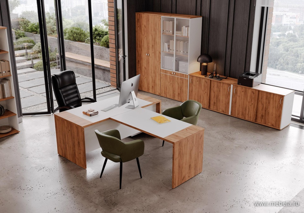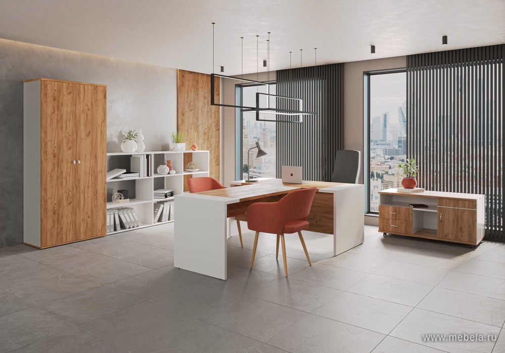 Кабинет руководителя Foil не только красив, но и практичен. Регулируемые опоры обеспечивают устойчивость на любых поверхностях, а продуманные детали, такие как выдвижное вешало и тумбы с замком, делают его удобным для повседневного использования. Кромка ПВХ толщиной 2 мм защищает от поврежде...