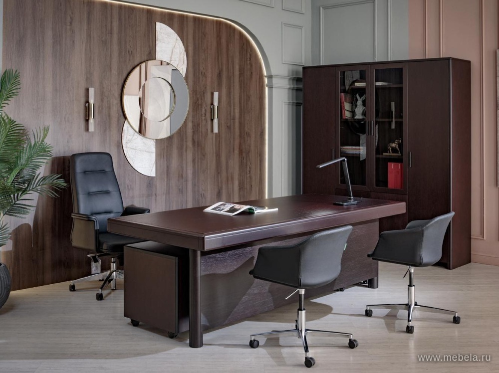 Лаконичный и строгий дизайн кабинета для руководителей Forte определяет высокий статус компании. Этот стильный набор включает в себя разные предметы мебели, необходимые для организации удобного рабочего места. Они изготовлены из прочных натуральных материалов высокого качества и надежности.