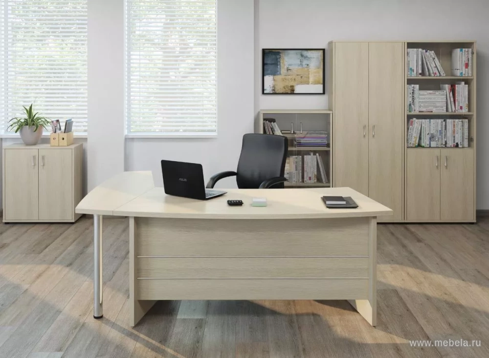 Скучное офисное пространство преобразится с кабинетами руководителя (Гранд) Grand в цвете дуб феррара. Их декоративные элементы и динамичные линии делают интерьер современным. Комбинированное использование разных материалов создает неповторимый образ офисной мебели.