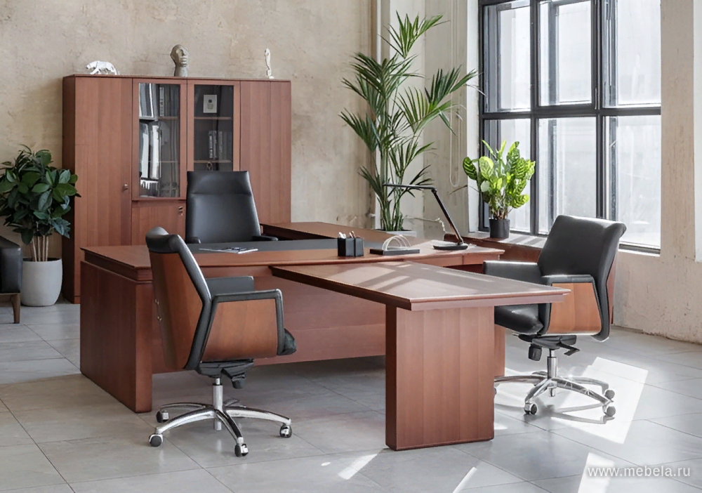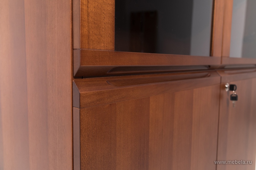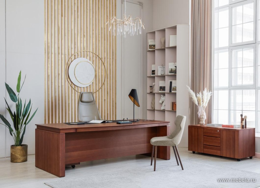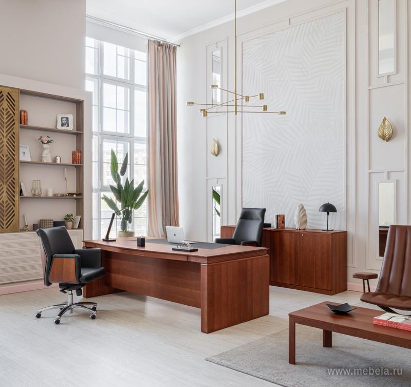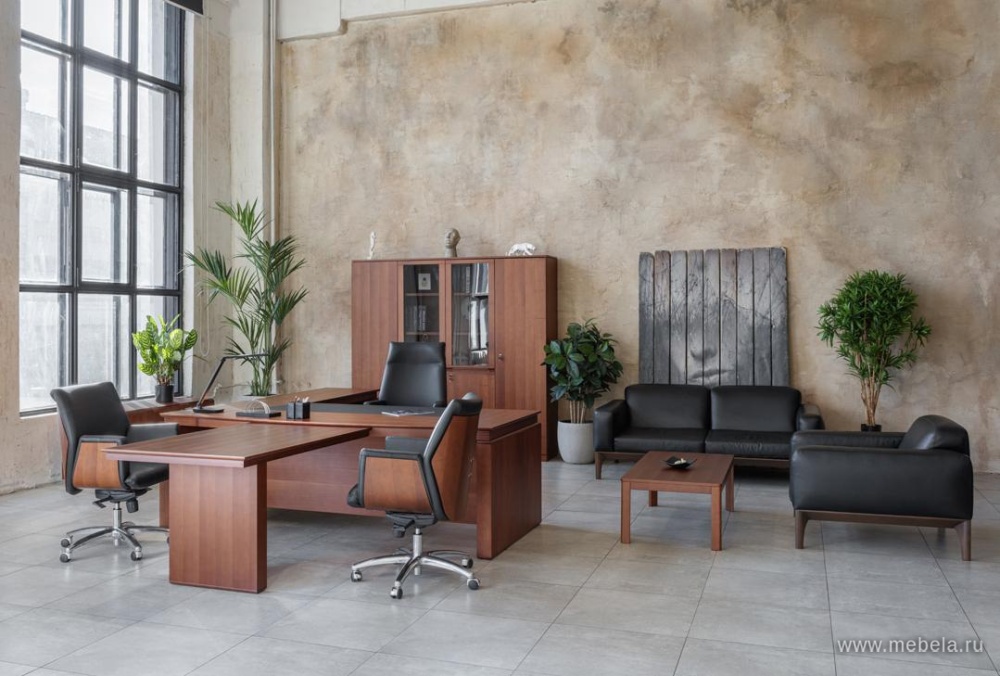 Кабинет Lago — достойный выбор тех, кто ценит престиж, элегантность и комфорт. Естественная элегантность и геометрическая завершенность форм. Превосходное качество натурального шпона в цветах дуб ферро и итальянский орех.
