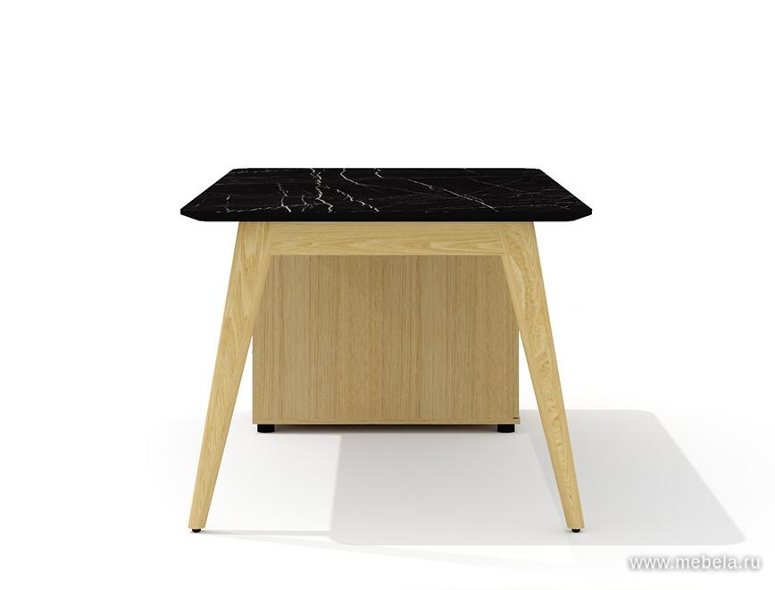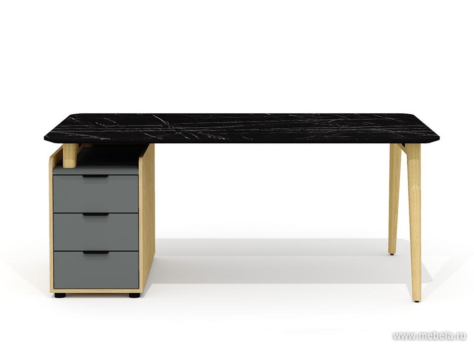 Трапециевидная столешника выглядит роскошно: стилизация под черный мрамор с хаотичным узором прожилок - самый модный тренд. Закрытые шкафы декорированы вставками из ясеня, вносят строгий деловой вид. Экологичный и стильный кабинет Remo - это мебель нового поколения, обеспечивающая комф...