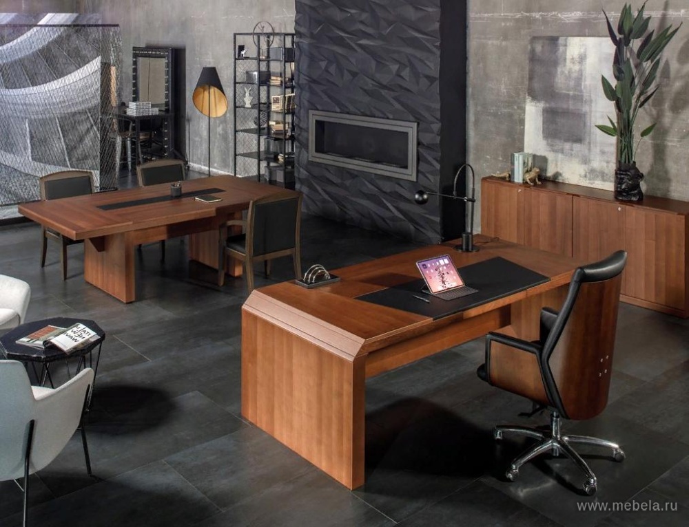 Кабинет руководителя "Riviera" в цвете итальянский орех и дуб ферро станет отличным выбором для компаний, стремящихся продемонстрировать свою успешность и стабильность, а также подчеркнуть высокий статус своих руководителей. Толщина столешницы: 73 мм Материал: МДФ, массив дерева, ...
