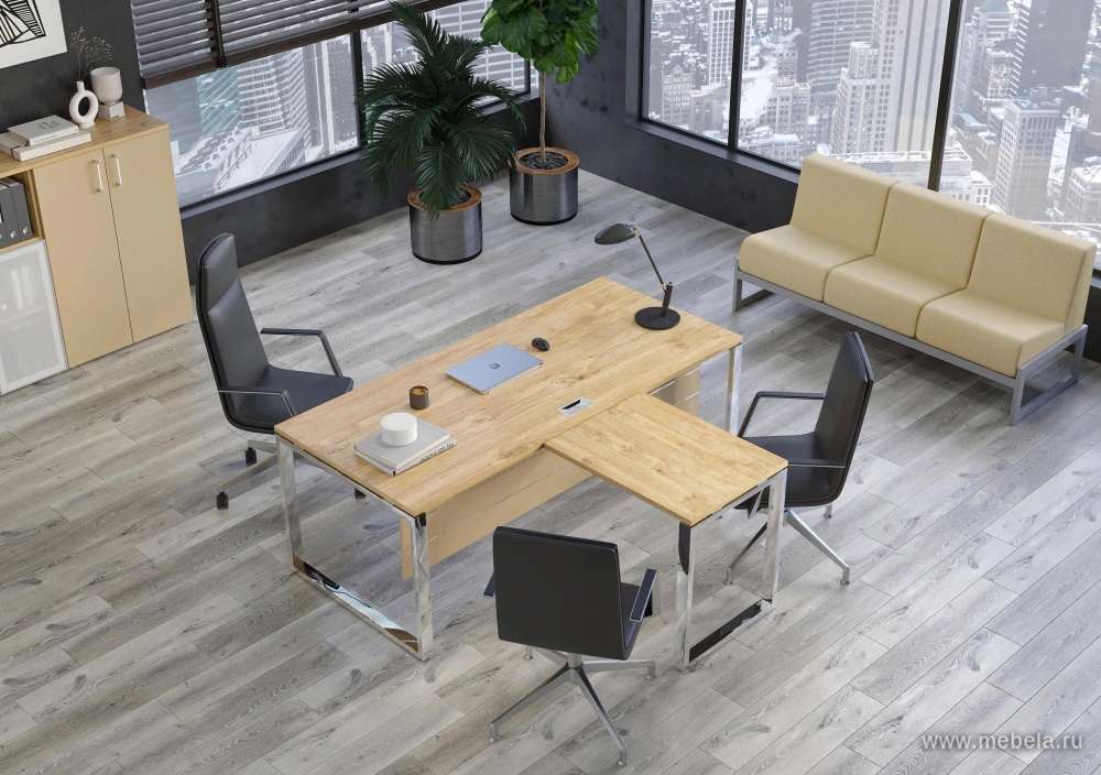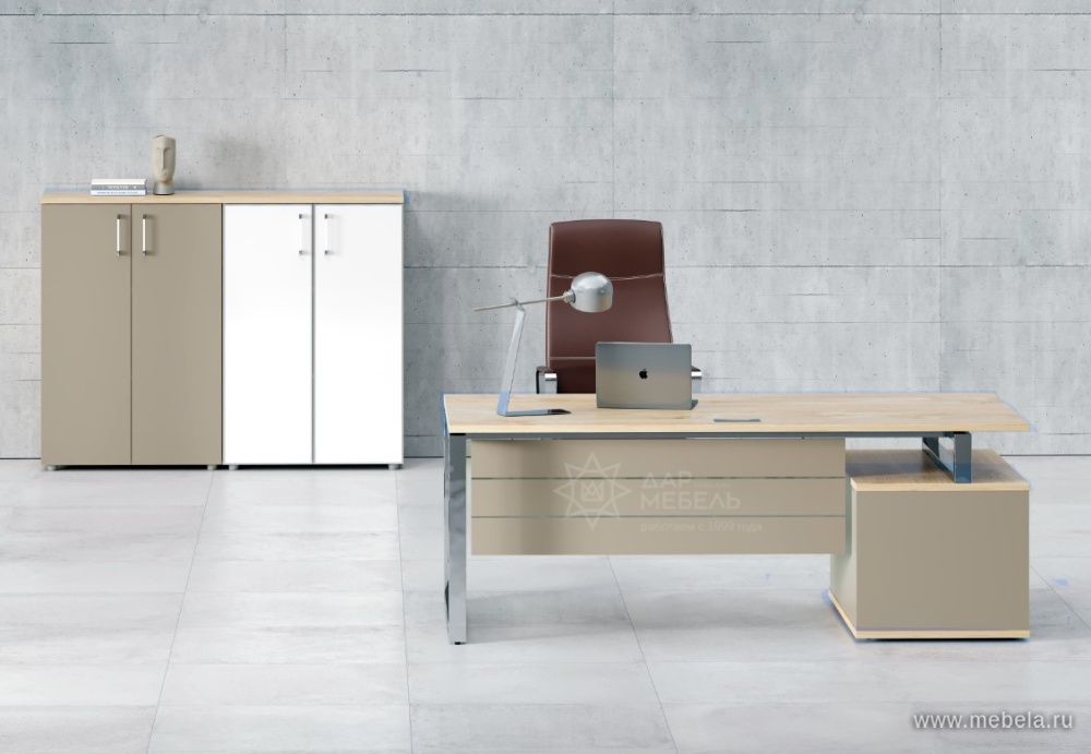 Наполненный светом, теплом привлекательной структуры тикового дерева, оттененный строгостью металлических элементов, кабинет руководителя Shift White притягивает взгляд и поражает продуманной эргономичностью. Качественные материалы, функциональные модули в стиле хай-тек создают современное рабочее пространство.