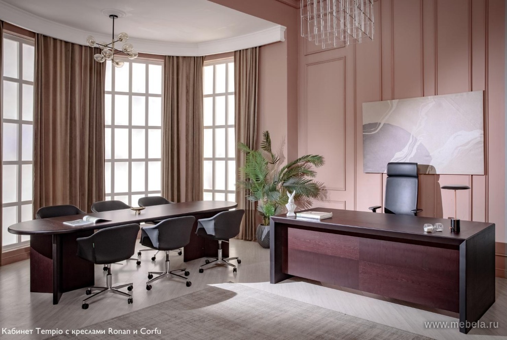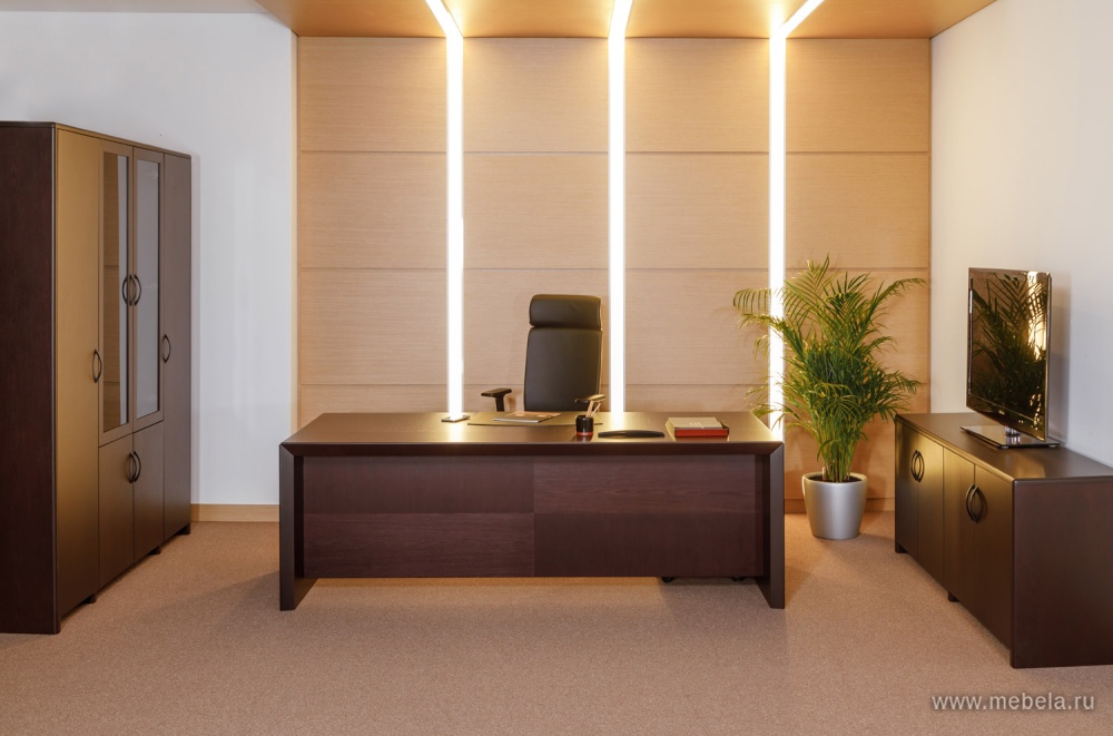 Строгий и современный дизайн кабинета руководителей Tempioнабирает все большую популярность благодаря презентабельному внешнему виду и высокому качеству всех предметов мебели. Комплектация этой серии состоит из двух вариантов письменных столов с разной конструкцией, кофейного столика, приставок и системы хранения.