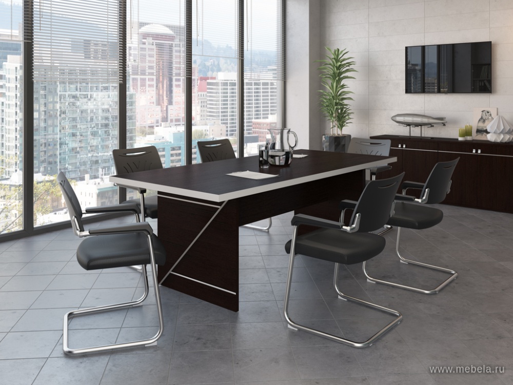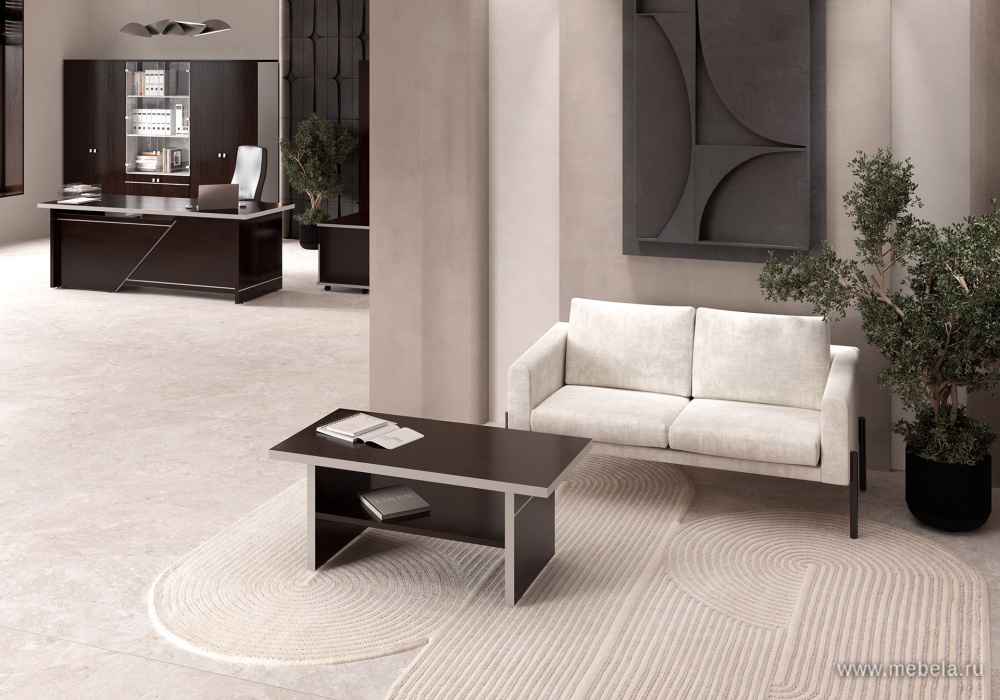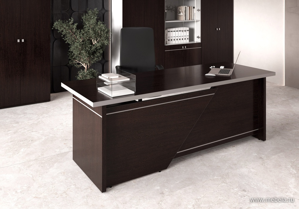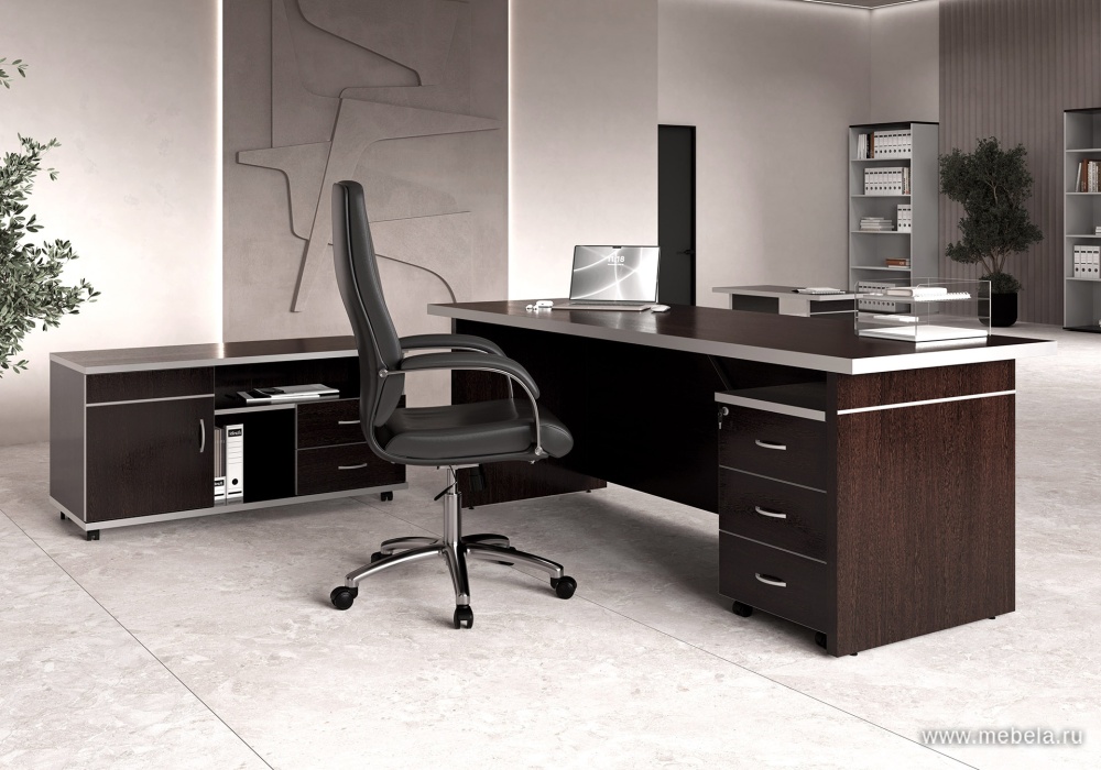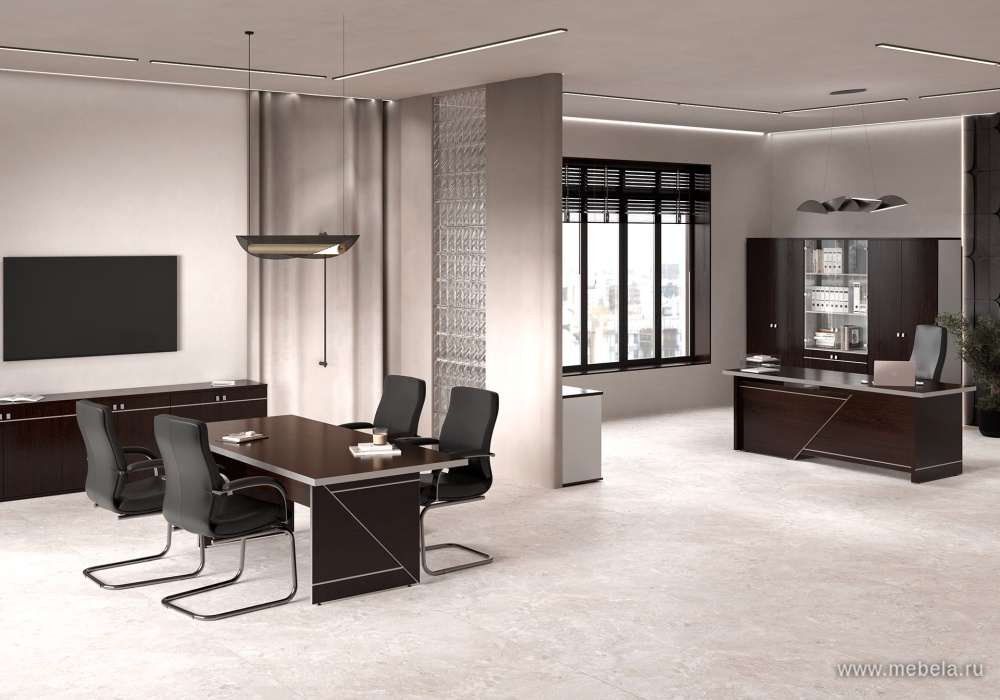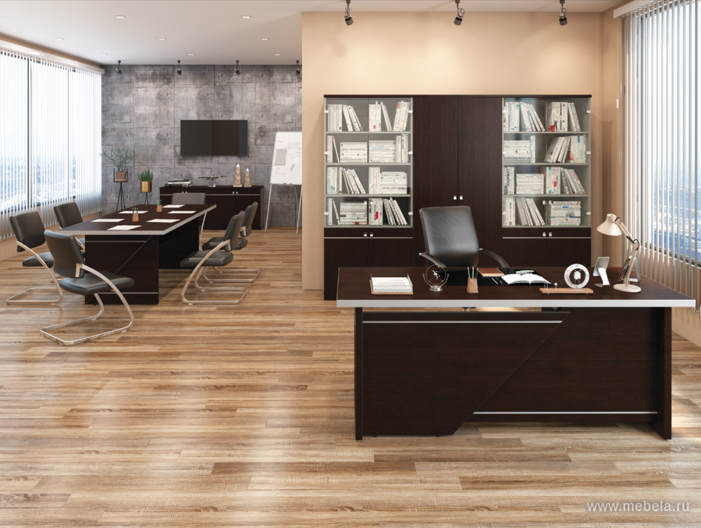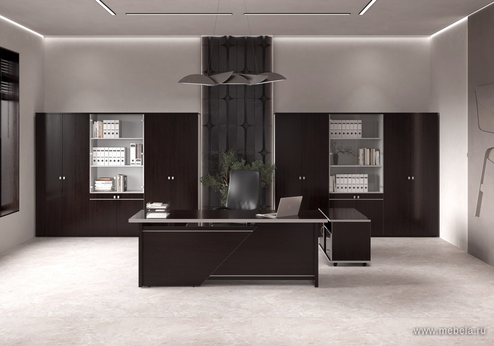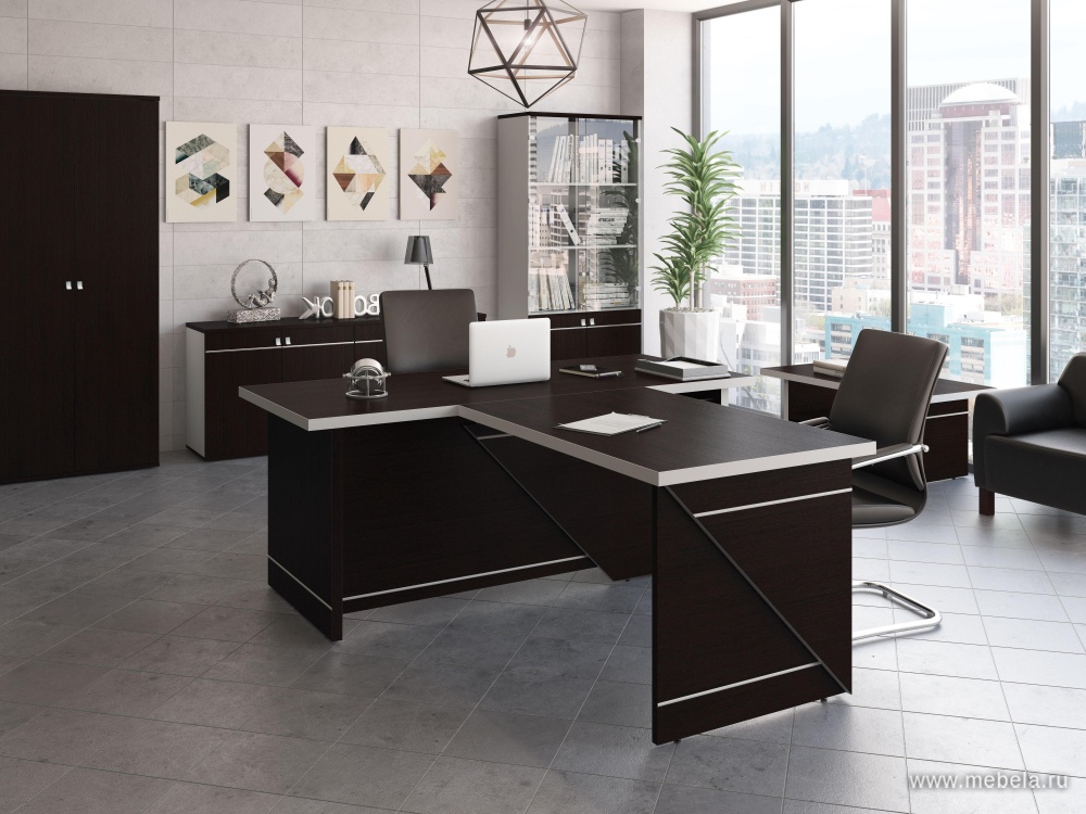 Если вам надоели классические формы мебели и хочется свежих решений, то мебель для кабинетов Zoom в цвете Венге легко их внесет в ваш офис. Z-образные соединения оснований шкафов, контрастный дизайн панелей и торцевых элементов, дополнительный декор – все это создает неповторимый образ кабинету современного руководителя....