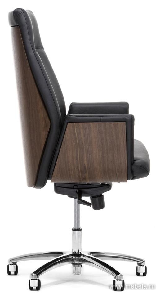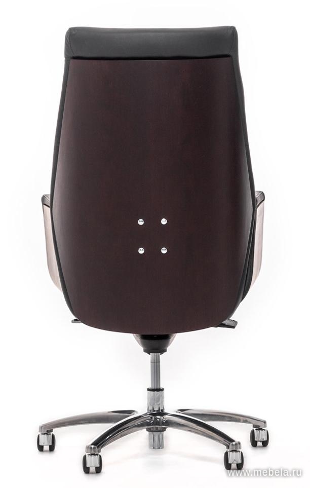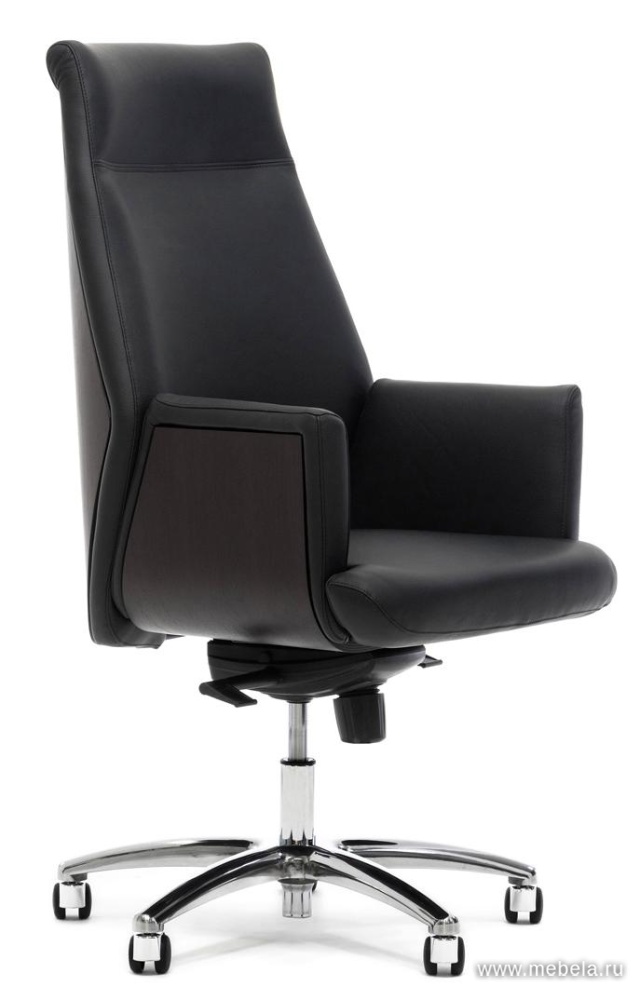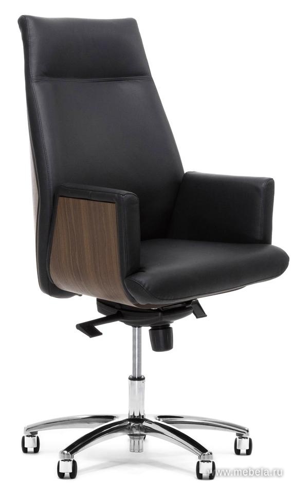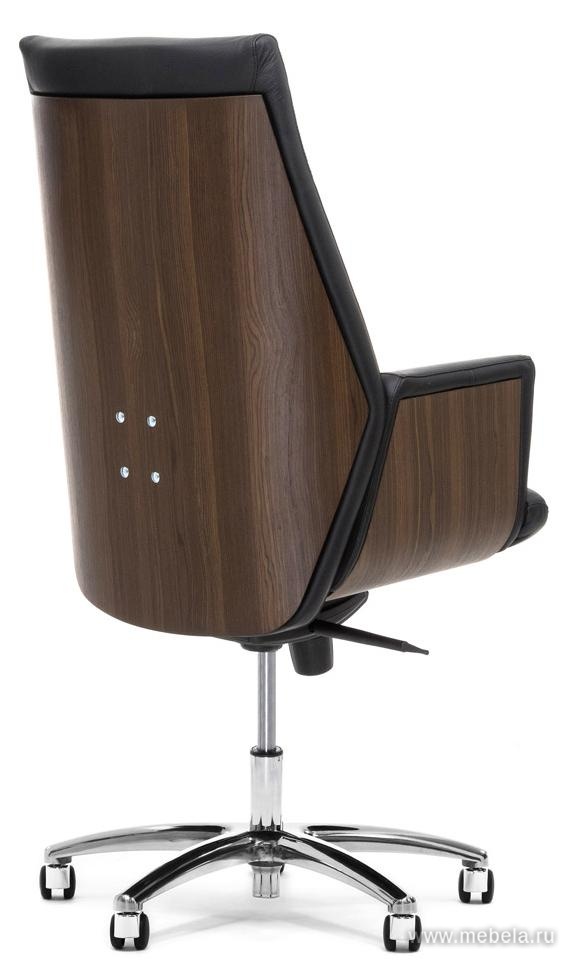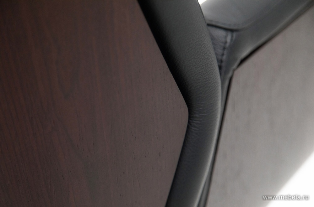 Дизайнеры создали кресло для руководителей Zeus A на основе симбиоза двух природных материалов – кожи и дерева. Внутренняя сторона обивки блестяще выделана кожей, а тыльная оформлена под цвет и фактуру темного ореха с помощью клееной фанеры.