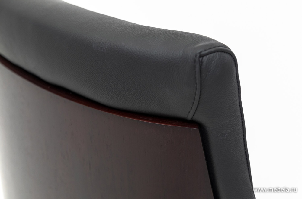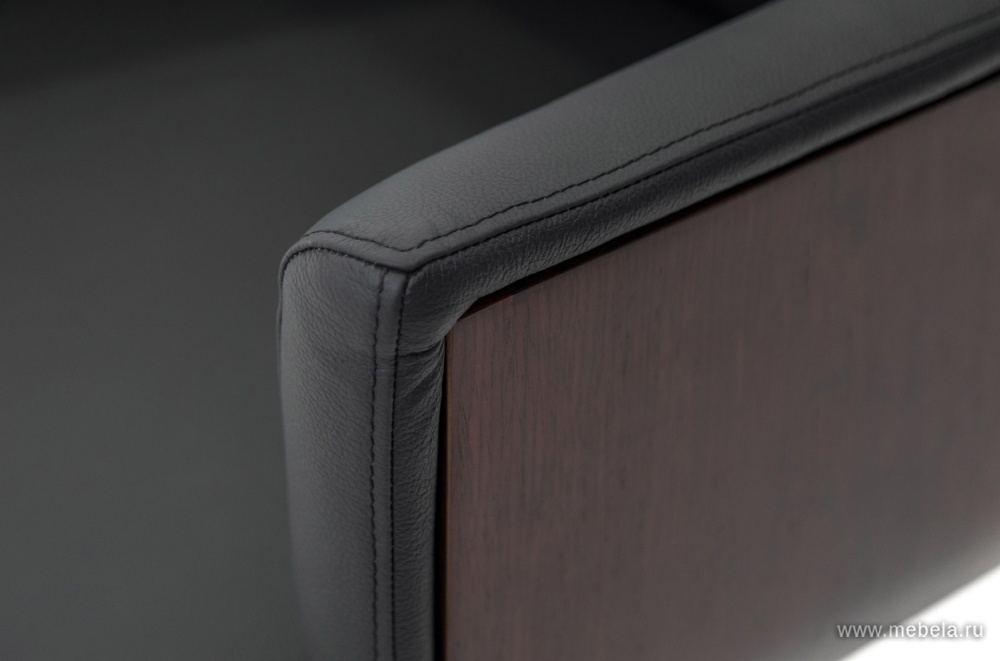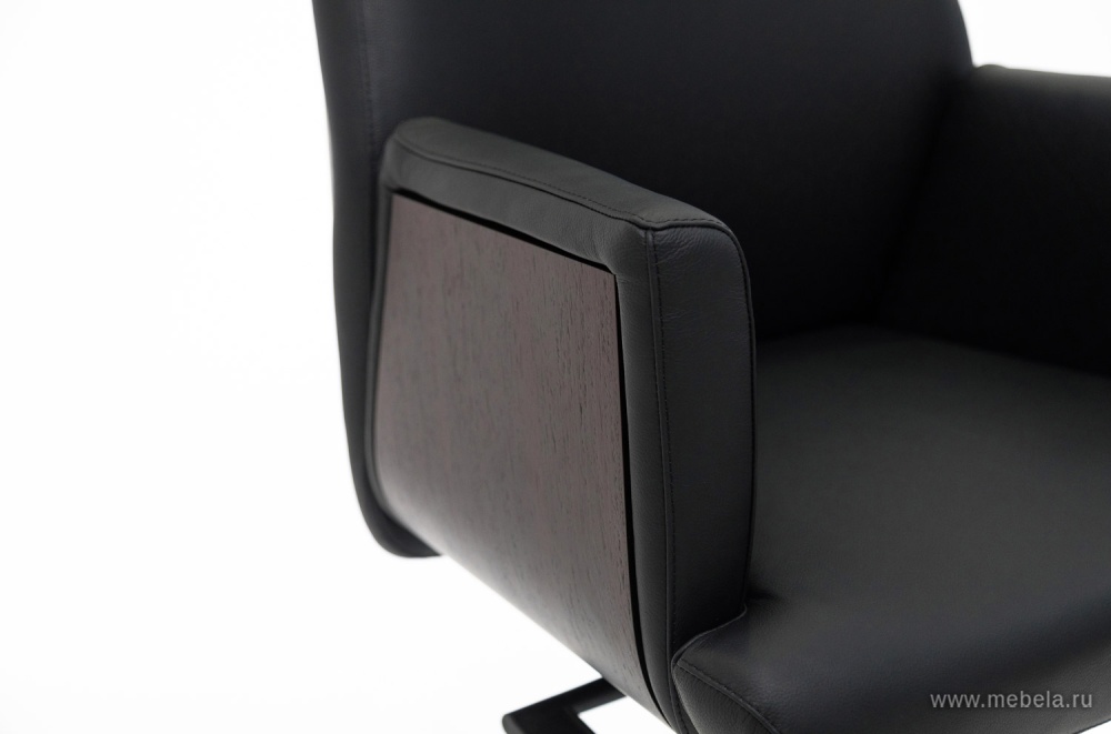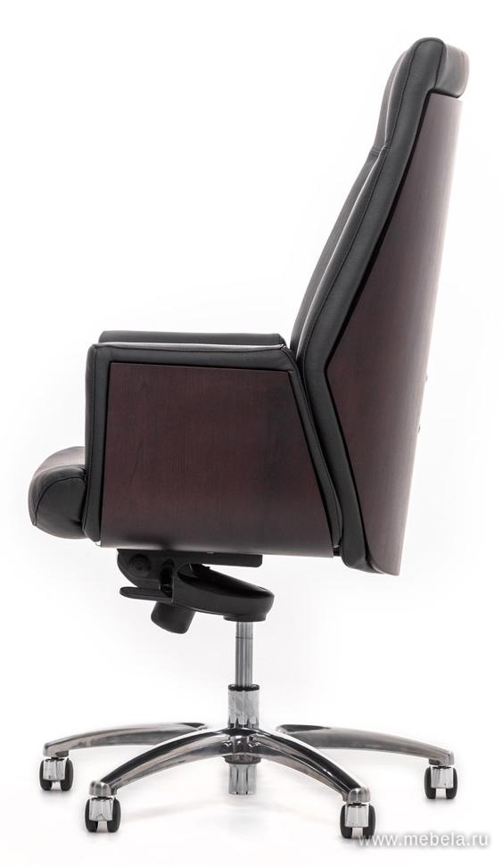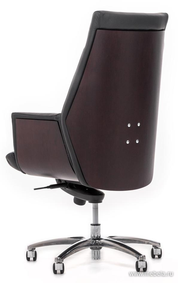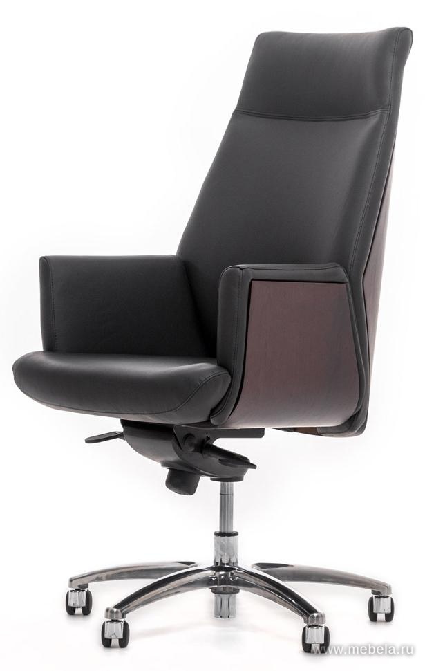 Дизайнеры создали кресло для руководителей Zeus A на основе симбиоза двух природных материалов – кожи и дерева. Внутренняя сторона обивки блестяще выделана кожей, а тыльная оформлена под цвет и фактуру темного ореха с помощью клееной фанеры.