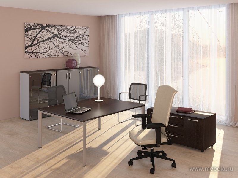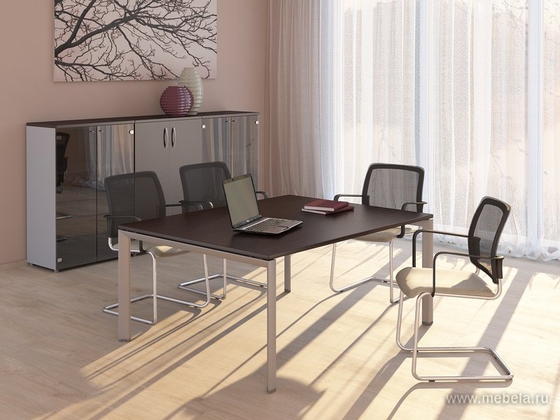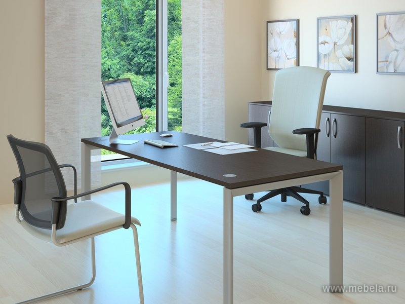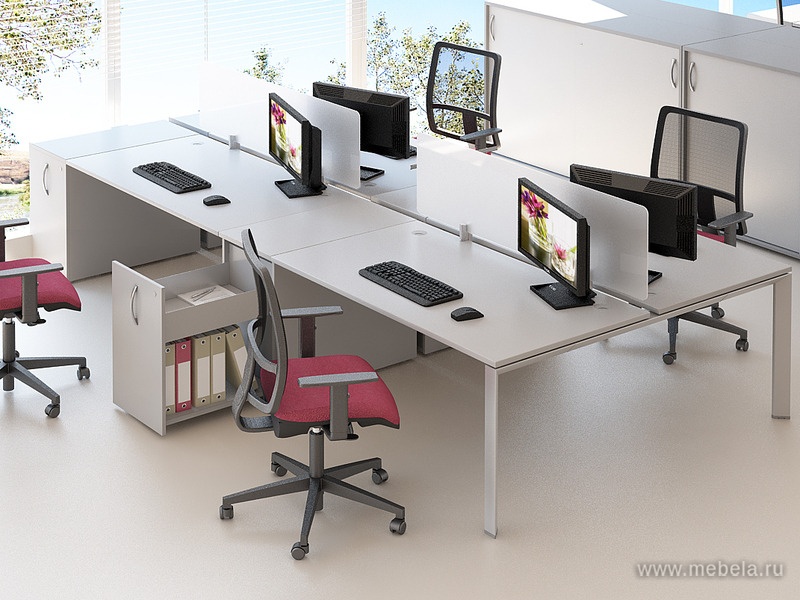 Сочетание ламинированных столешниц и металлических утонченных опор формирует высокотехнологичный современный стиль. Разнообразие цветовых решений одинаково подойдет офисам с самым разным дизайном, подчеркивая индивидуальность помещения. Ламинированная поверхность мебели для персонала защищает е...