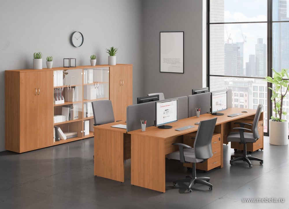 Главной особенностью мебели для офисов Формула является возможность создания из нее сложно-комбинированных рабочих зон. Гарнитур представлен самыми разными геометрическими решениями, одинаковыми по высоте, способными быть объединенными друг с другом по воле заказчика.