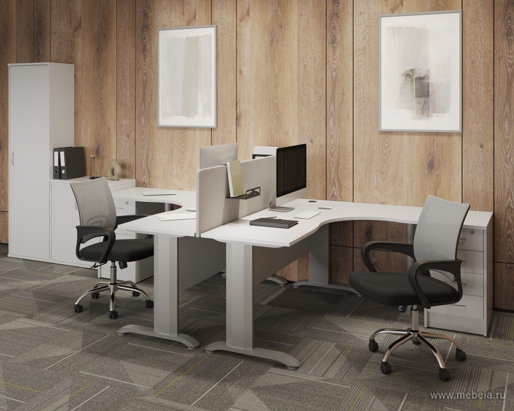 Высокотехнологичный стиль мебели для персонала RIVA METAL придаст любому офису футуристический стиль. Современным тенденциям этот комплект соответствует не только внешне. Внутри полых опор есть возможность для прокладки кабелей, а на самих столах есть выходы с заглушками для подключения.