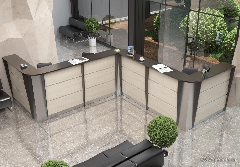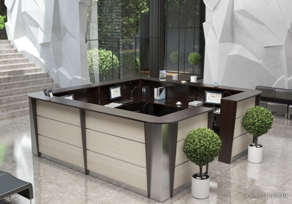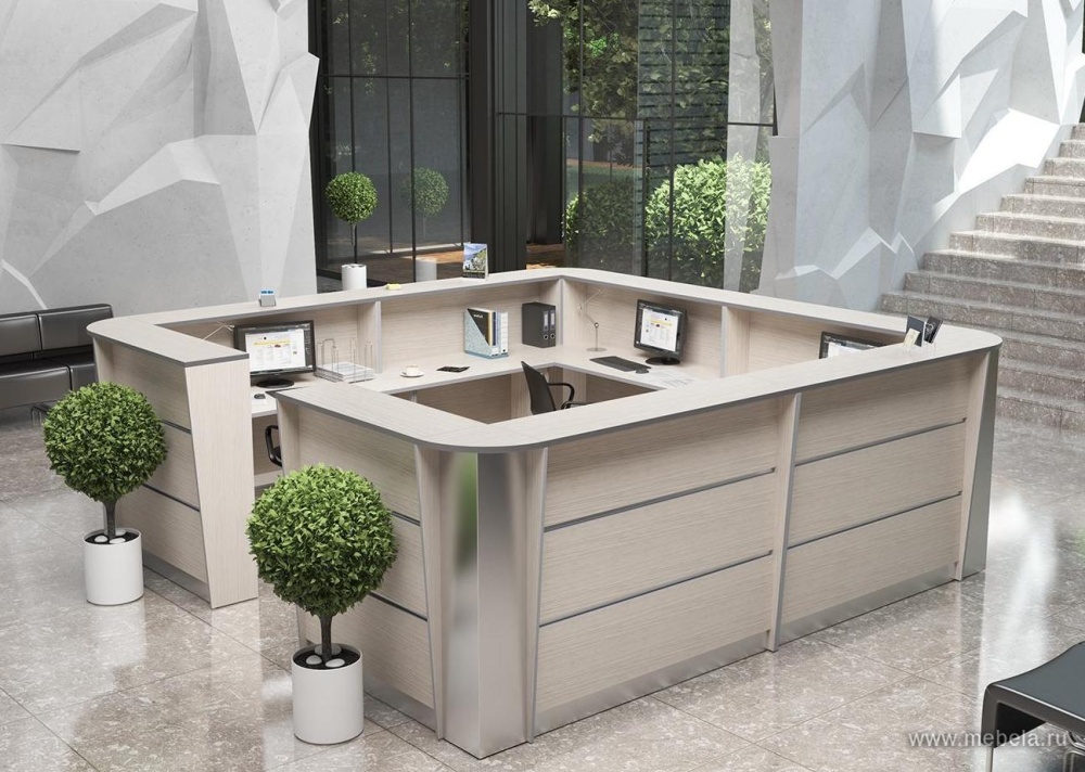 Эргономичная стойка ресепшен Rapid - важный элемент интерьера офиса. Это “лицо” компании, которое создает привлекательное впечатление у посетителей. Такой предмет мебели выполнен из практичного, долговечного ЛДСП. Стойка имеет традиционную “П” образную, либо угловую форму.
