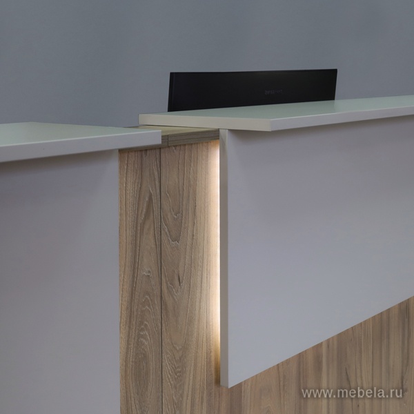 Rio Reception — функциональная и стильная стойка ресепшн, идеально вписывающаяся в концепцию офисного пространства. Модульная система с опцией подсветки и скрытым подключением техники обеспечивает комфорт и удобство. Доступна в различных цветовых решениях, идеально сочетаясь с сериями Rio.