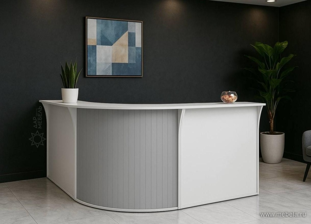 Чистые белые цвета стойки ресепшн RIVA White идеально подойдут для оформления приемных медицинских учреждений или любых других компаний, желающих подчеркнуть свою открытость перед посетителями. Использование европейских материалов и российской сборки обеспечивают высокое качество по доступной цене.