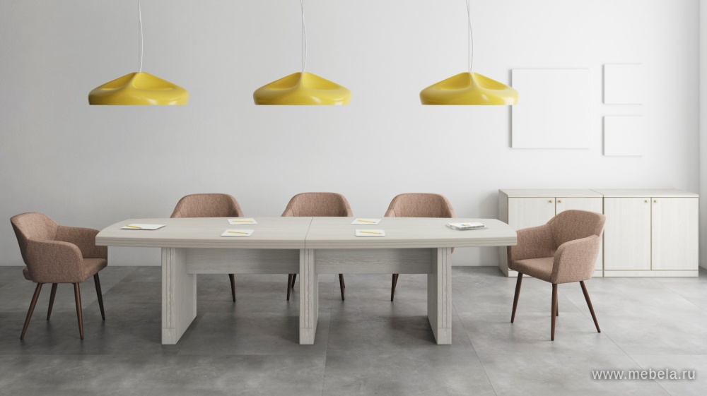 В столах для переговоров Capital удалось совместить предельную массивность и изящный внешний вид. Закругленная кромка столешницы придает доске толщиной в 85мм утонченную форму, совсем не выглядя грубо. Матовая обработка ламинированным покрытием и цвет палисандра в оформлении гарнитура обеспечивает ему солидный вид.