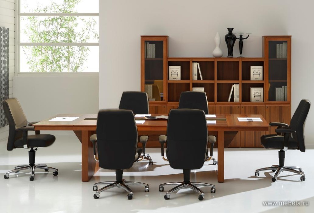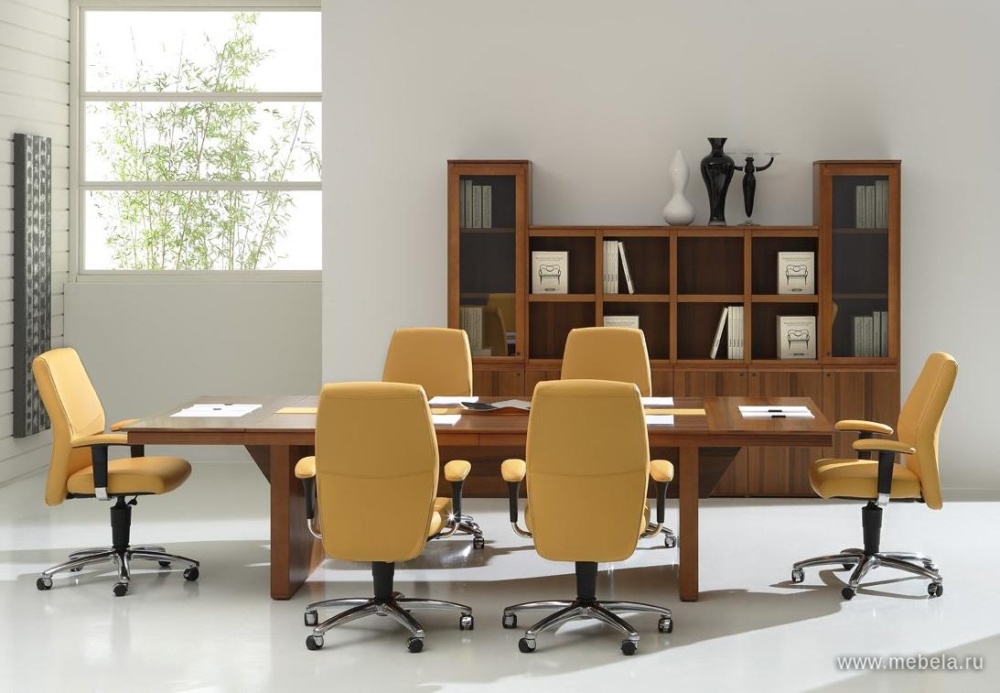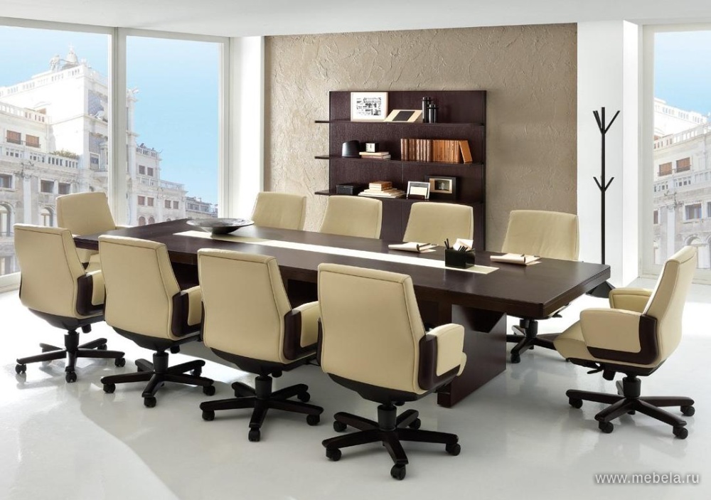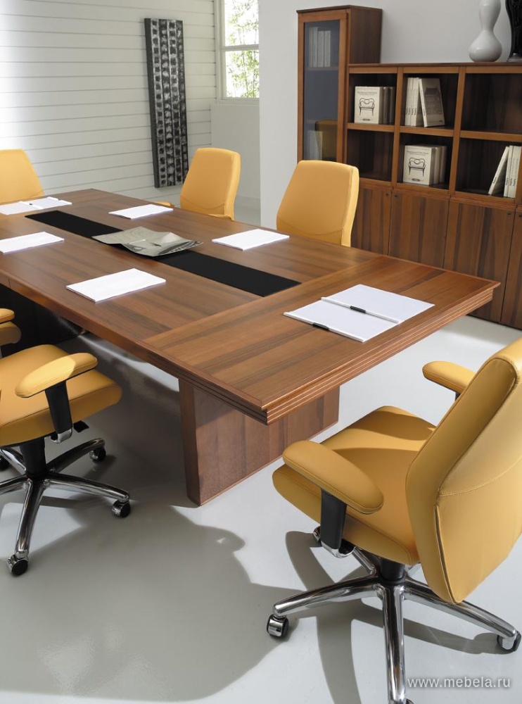 Итальянские дизайнеры блестяще доказали столами для переговоров Eur, что классические формы и яркий современный внешний вид прекрасно уживаются друг с другом. Стильный контраст темного шпона и белой кожи создают объемный образ, подчеркивающий открытость новым идеям при проведении совещаний.