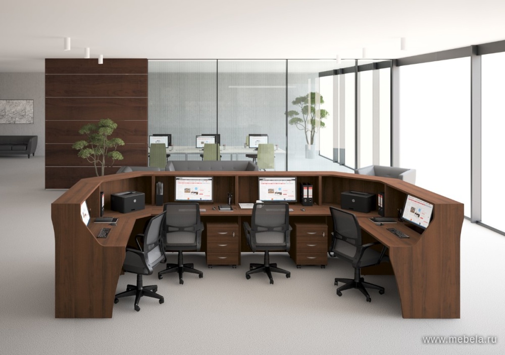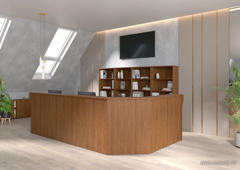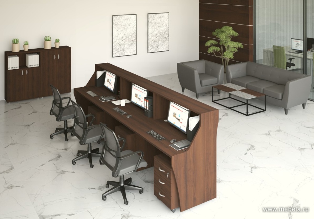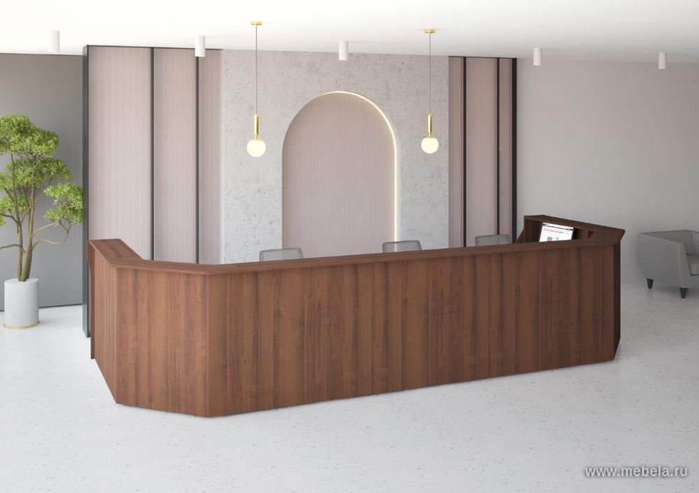 Классический образ стойки ресепшн Комфорт подчеркнет солидность приемной вашего офиса благодаря четким формам и благородным цветом французский орех. Устойчивое к внешним воздействиям ламинированное покрытие ДСП сохраняет внешний вид мебели на протяжении всего срока ее использования.